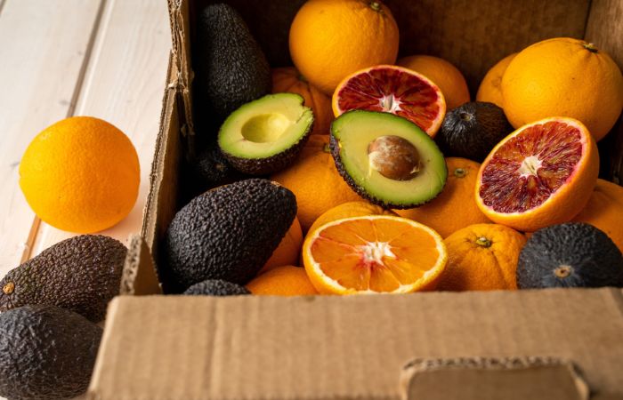 Confezioniamo una cassetta con una retina di Avocado Hass BIO da 2 kg e la riempiamo con 9,5 kg di Sanguinello BIO. L’avocado Hass è un frutto dalla forma piriforme caratterizzato dalla buccia rugosa e grezza dal colore verde scuro che tende al nero andando avanti con la maturazione, la polpa è molto cremosa, priva di fibre dal color verde pallido e con un gusto molto intenso.Quella del Sanguinello è la meno diffusa delle arance rosse pigmentate, il nome richiama il tipico colore rosso “sanguigno” dato dall’elevata presenza di antociani. La buccia è color arancio screziata, aroma delicato e gusto dolce, decisamente meno deciso del moro, e quindi più piacevole al palato anche da consumare a tavola oltre che per ottime spremute. Il cubotto così formato costa un pò meno che comporre una cassetta personalizzata con gli stessi componenti poichè ne facciamo tanti uno dopo l'altro. Per questo motivo, ordinando una cassetta mista standard, non è possibile scegliere il produttore, altrimenti il lavoro si complicherebbe e costerebbe di più. Il cubotto così formato costa un po meno che comporre una cassetta personalizzata con gli stessi componenti poichè ne facciamo tanti uno dopo l'altro. Per questo motivo, ordinando una cassetta mista standard, non è possibile scegliere il produttore, altrimenti il lavoro si complicherebbe e costerebbe di più.
