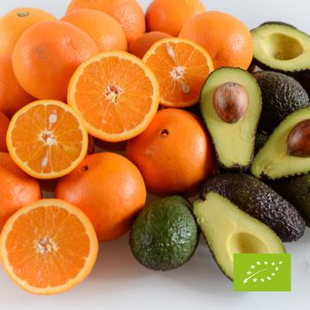 Cubotto contenente 9,5 kg di valencia e 1 retina di avocado hass da 2 kg Il Valencia è la cultivar di arancia bionda più coltivata e più conosciuta al mondo. Dalla forma sferica, leggermente schiacciata ai poli, dalla buccia dal colore arancio chiaro, è l’arancia da spremere per eccellenza data la sua elevata resa in succo, la quasi totale assenza di semi, e per la sua spiccata aromaticità.