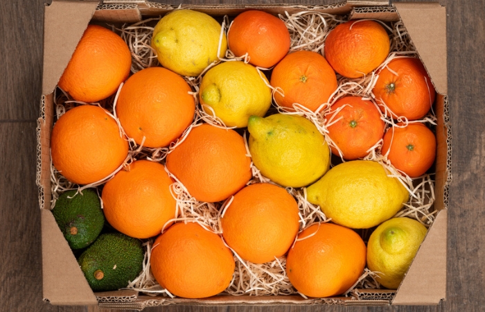 All'interno troverete 1,75 kg di Arance Navelina Bio, 0,9 kg di Limone Bio, 0,5 kg di Clementine Nova Bio e 0,25 kg di Avocado.